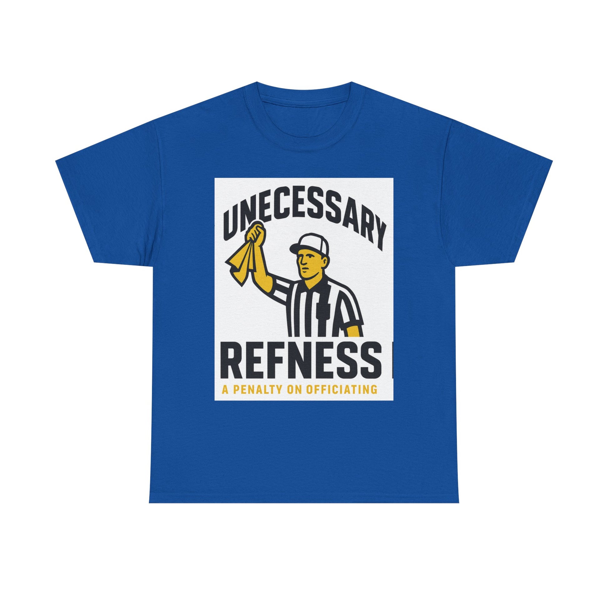 Penalty! Unnecessary Refness! That's right, Refness! Football fans, are you ready for the t-shirt with some attitude? Show those referees what you think about them getting too involved in the games! Too many penalties! Too many rules! Personalize your shirt with your own penalty, too!!! This could get interesting!